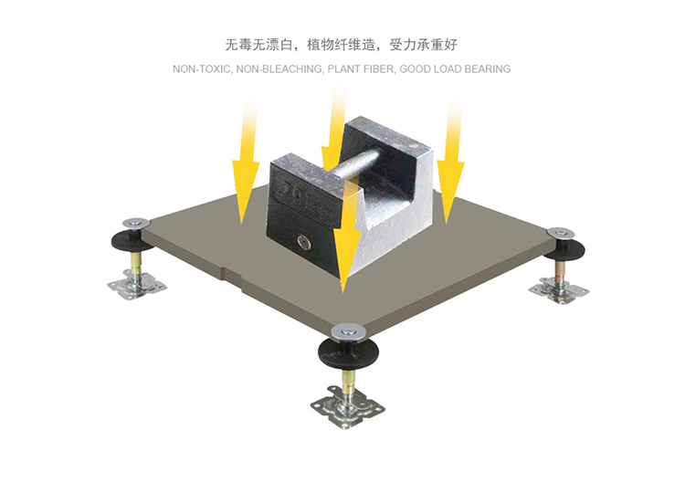無(wú)機(jī)質(zhì)網(wǎng)絡(luò)地板是由硅酸鹽、無(wú)機(jī)纖維、礦物纖維、石英砂等材料經(jīng)過高壓一次成型的環(huán)保地板,每塊地板自帶穿線孔。地板四角鍍鋅底座支撐,不帶橫梁系統(tǒng)。每塊地板四角有90度圓弧,四塊板組合而成后形成一個(gè)圓,有一個(gè)鐵制螺母壓角固定。