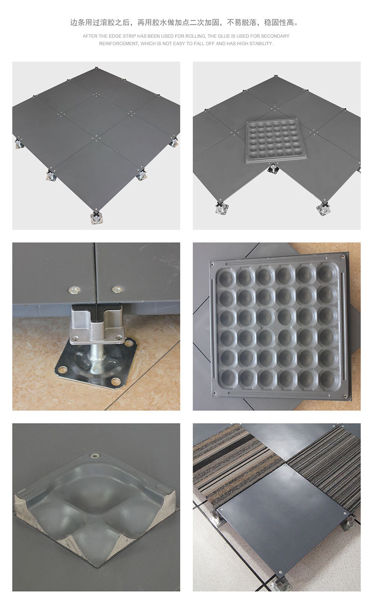 該地板可以選配帶出線口的配置,可根據(jù)要求任意添加線槽布線更具靈活性。此地板可以將強(qiáng)、弱電分開(kāi)隔離,同時(shí)也便于檢修。安裝采用無(wú)梁角鎖,具有牢靠、穩(wěn)定、調(diào)平、簡(jiǎn)便之特點(diǎn)。